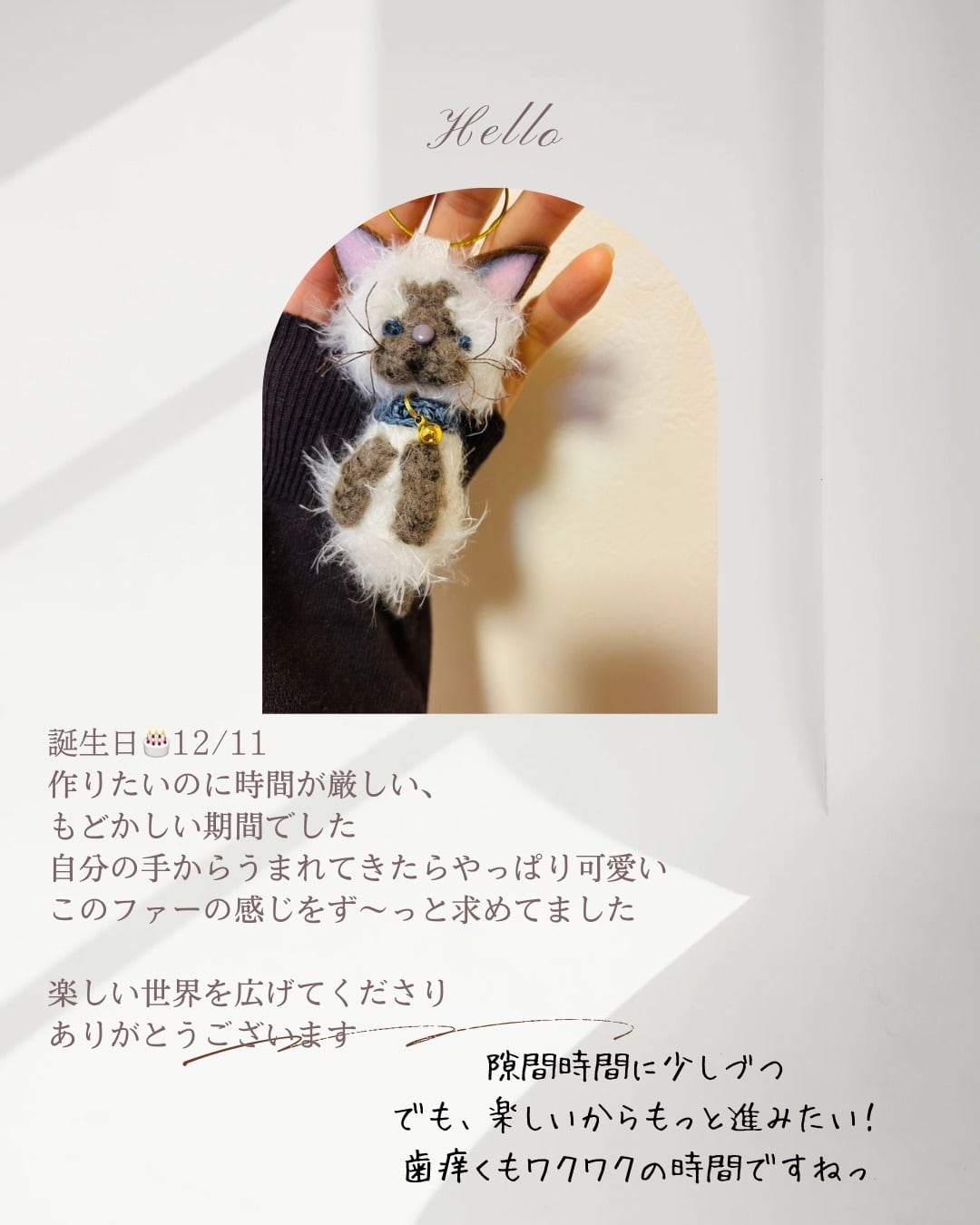 01-01 はじめてでも完成できるファーぐるみ体験キット(白猫)|動画付き・初心者OK